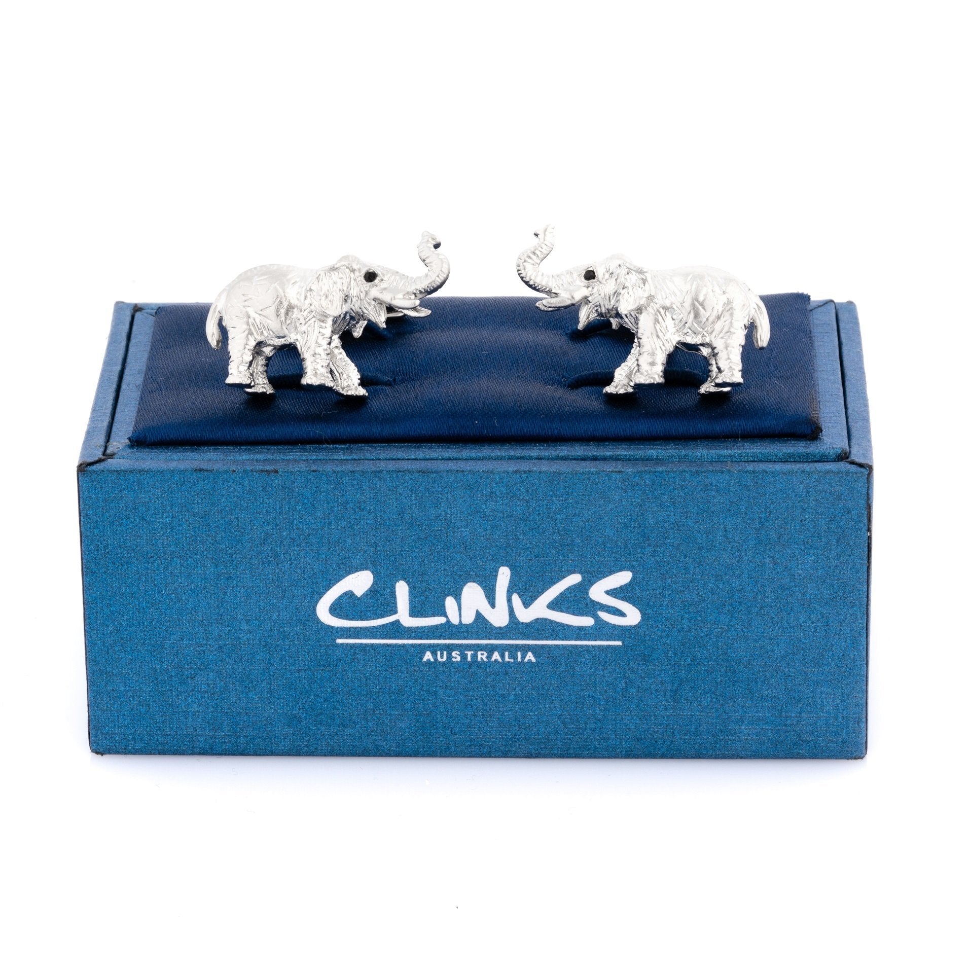 Comes in a stylish gift boxBrushed Silver Elephant Cufflinks. We listen to our customers at Cuffed, and after so many emails requesting Elephant Cufflinks here they are! The elephant is our largest land animal and while this silver cufflink pair isn't quite as big, they are exquisitely crafted from solid rhodium silver and have an impressive 3D design. Presented in a stylish gift box, this silver cufflink set is sure to pop out on any shirt and on any occasion! With their trunks raised this beautiful pair will make for a quirky gift for the animal lover in your life.