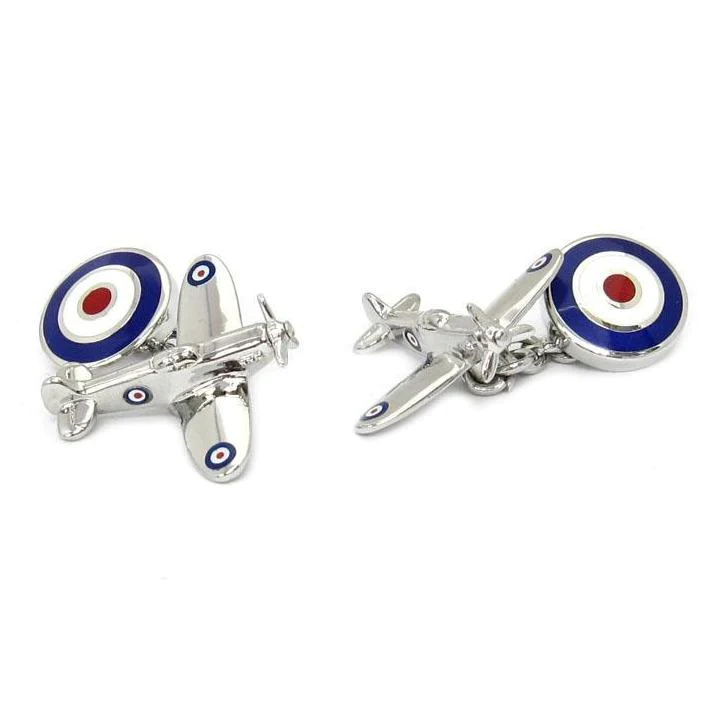 Comes in a stylish gift boxThese spirtfire cufflinks are very unique becuase they feature a chain fitting, and a Roundel on the back. The roundel (target type symbol) is of the british air force. These spitires are great for those who love aircraft. Presented in a classy box, they make a great present.