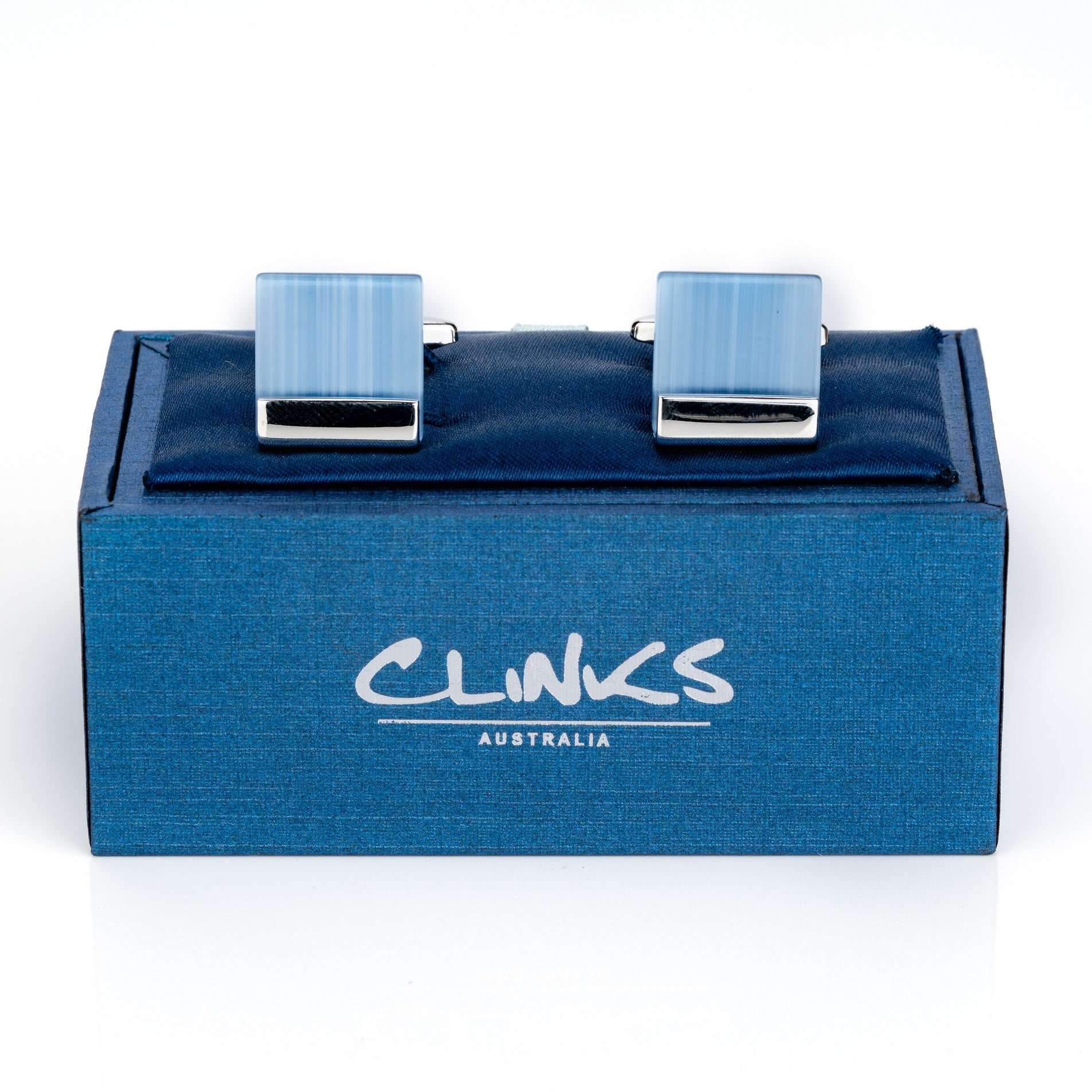 Comes in a stylish gift boxPerfect for the suave gentleman, this classic blue ice cufflinks set is mounted in a beveled rhodium-plated silver coat containing a beautiful blue cateye stone, and is ideal for any formal occasion. The definition of cool, we have received numerous feedback from customers who praise its simple but charming design.