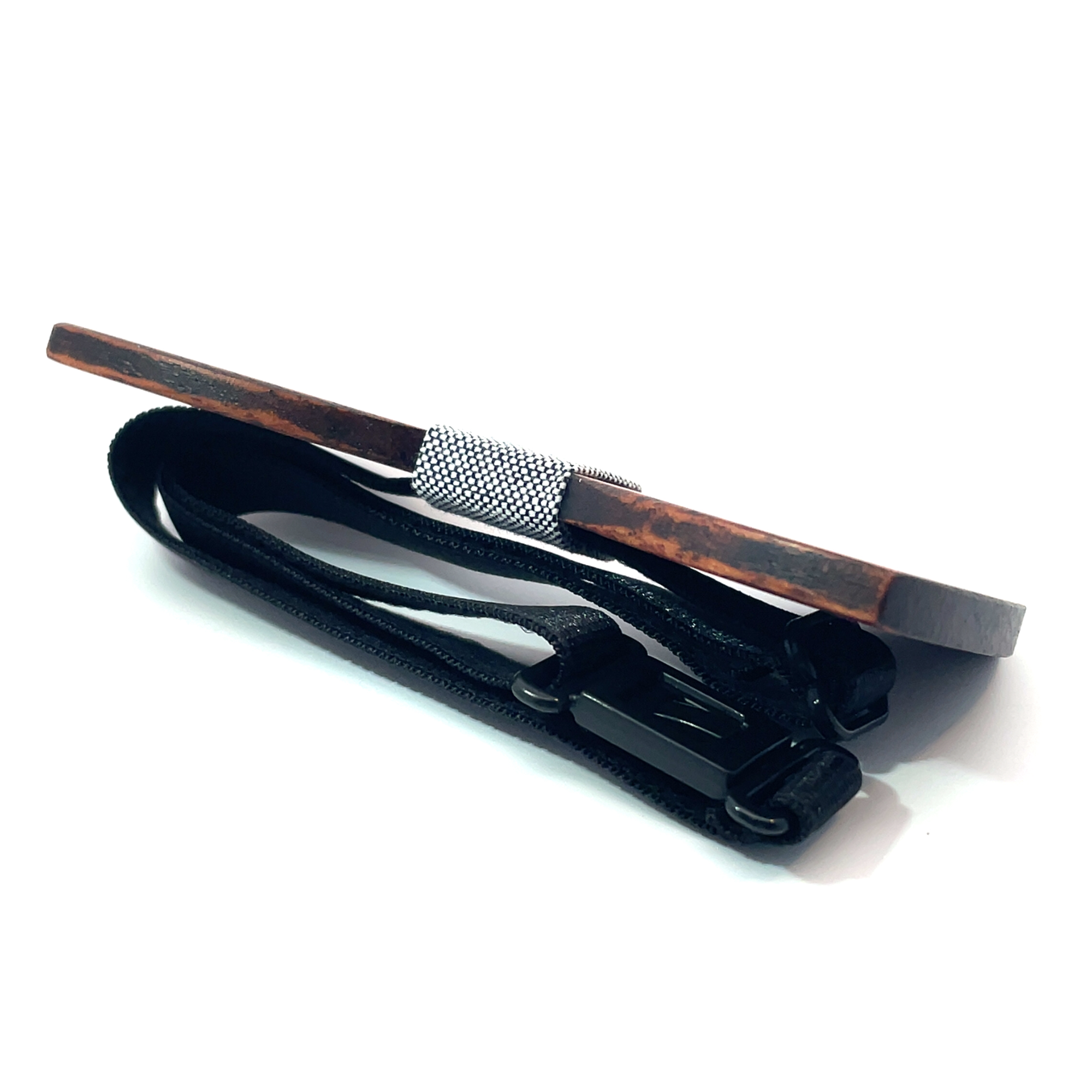 Comes in a stylish gift boxThe perfect natural look, a gorgeous wooden bow tie featuring a black dotted fabric centre. Handcrafted in solid wood with an adjustable neck strap. A statement piece for someone who loves to set a trend. Perfect style for weddings, formal and funky parties. Presented in a stylish blue gift box.