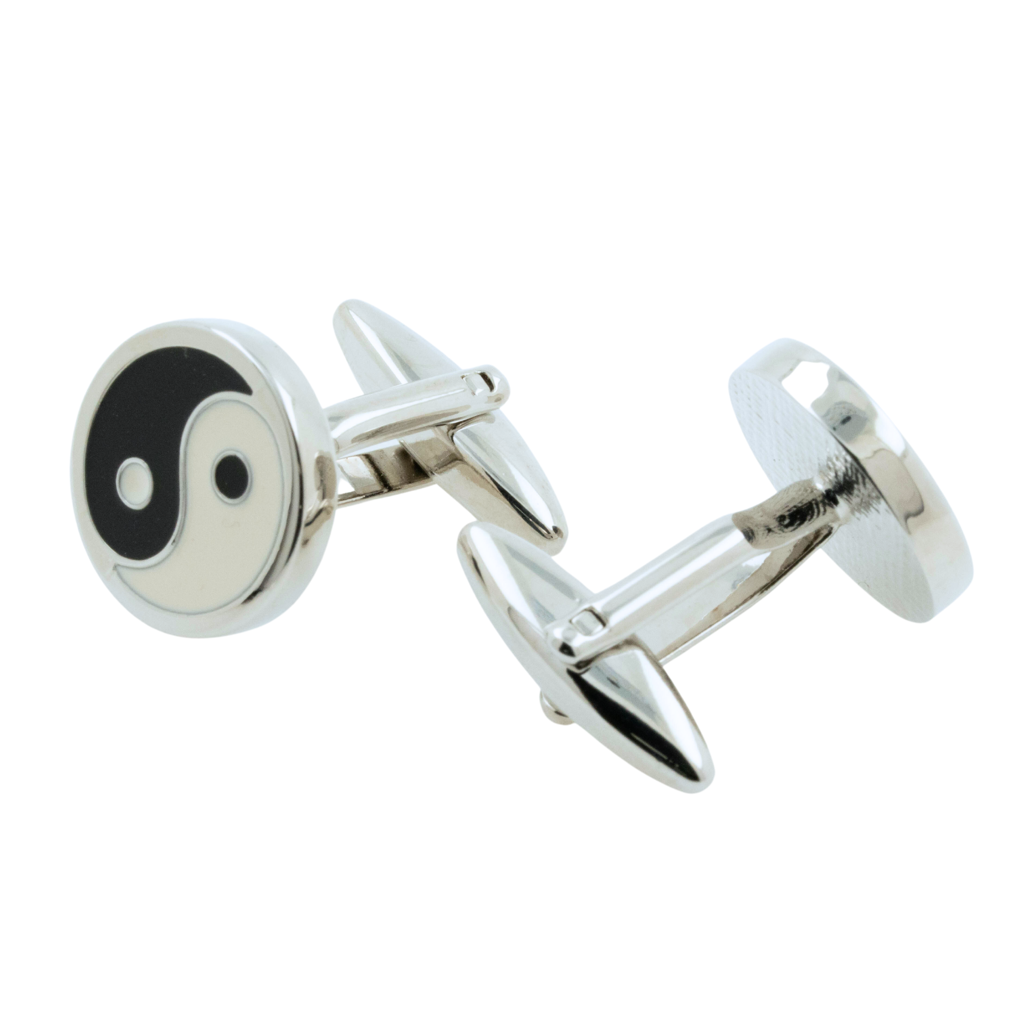 This symbol represents the ancient Chinese understanding of how things work. These pair of Ying Yang Cufflinks feature black and white enamel and are finished in high-quality rhodium plating. They can be worn on ANY dress shirt with Shirt Cuff Adapter.