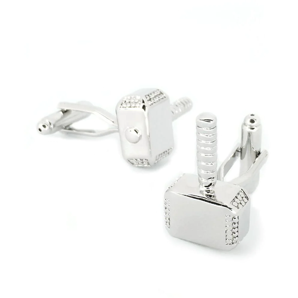 Comes in a stylish gift boxThese hammer cufflinks are inspired by the design of Thor's hammer. The set is finished in rhodium silver and polished to a high shine. Perfect for fans of the Norse god of Asgard. Presented in a handsome gift box.