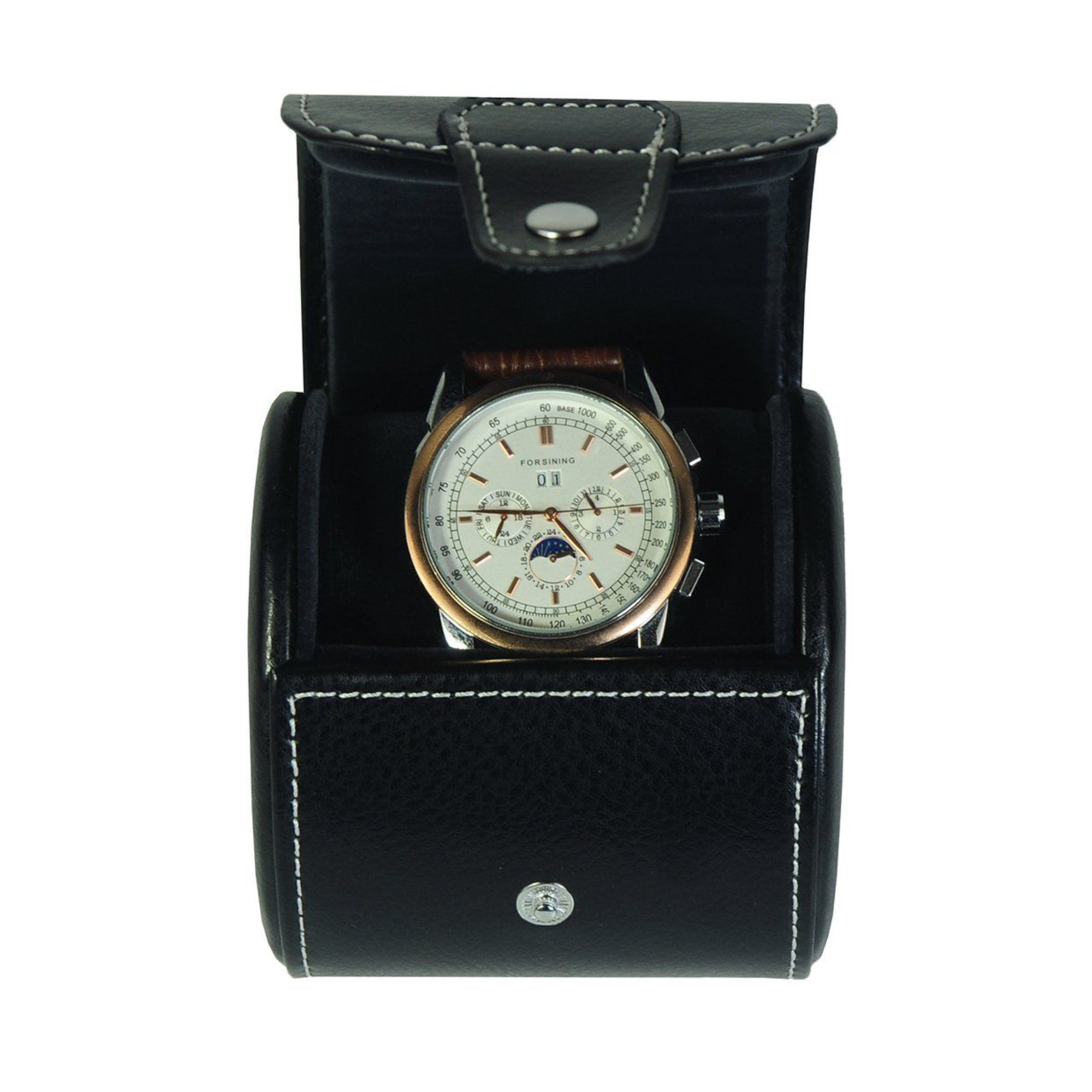 Hex Leather Watch Roll 1 Slot in Black/Charcoal