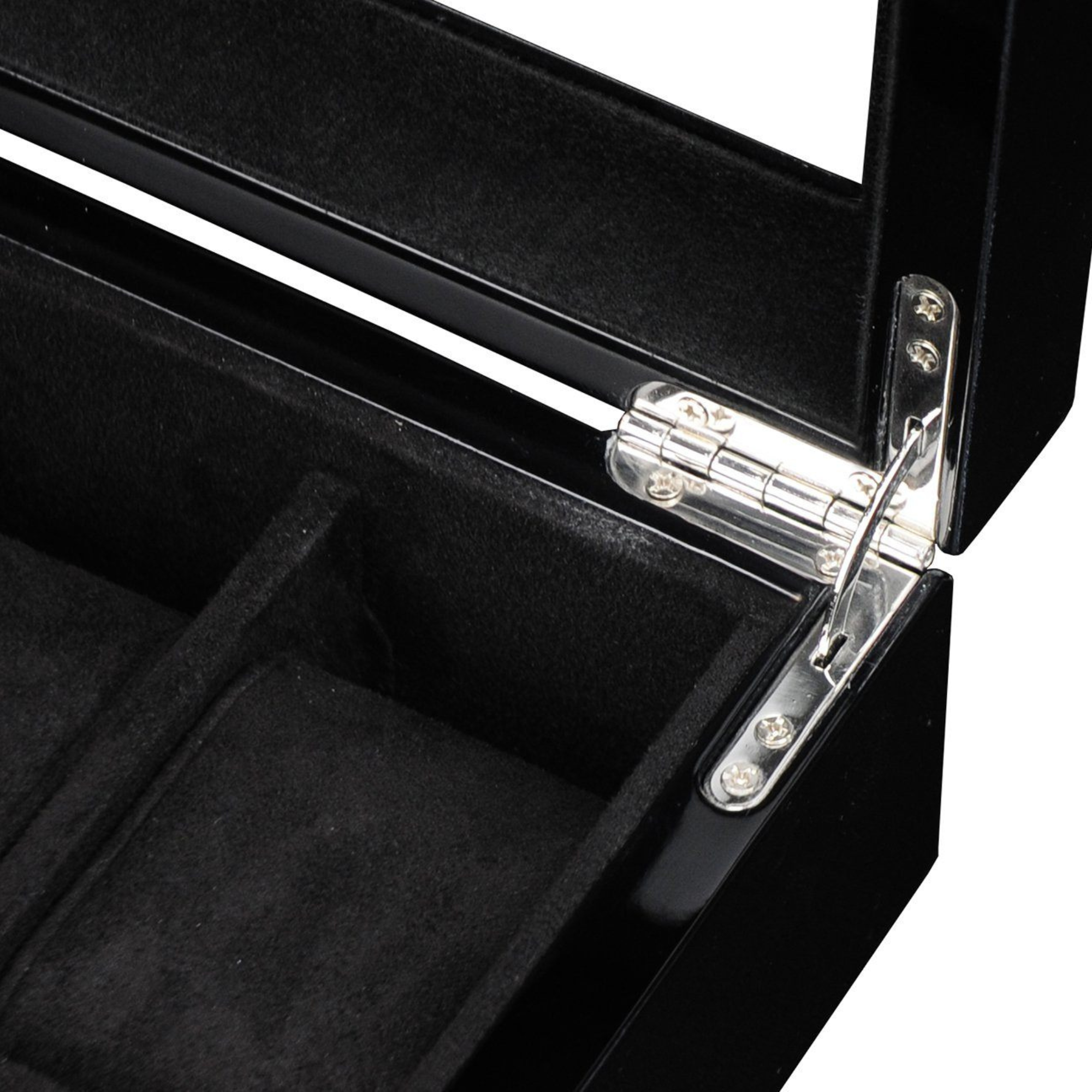 Quick same-day dispatchThis Black Wooden Watch Box holds 10 watches, it has a metal plate for a sleek design and a high gloss finish. This handmade and eco-friendly watch box is expertly designed and is an excellent storage solution for your watches. Perfect for present watch collectors.