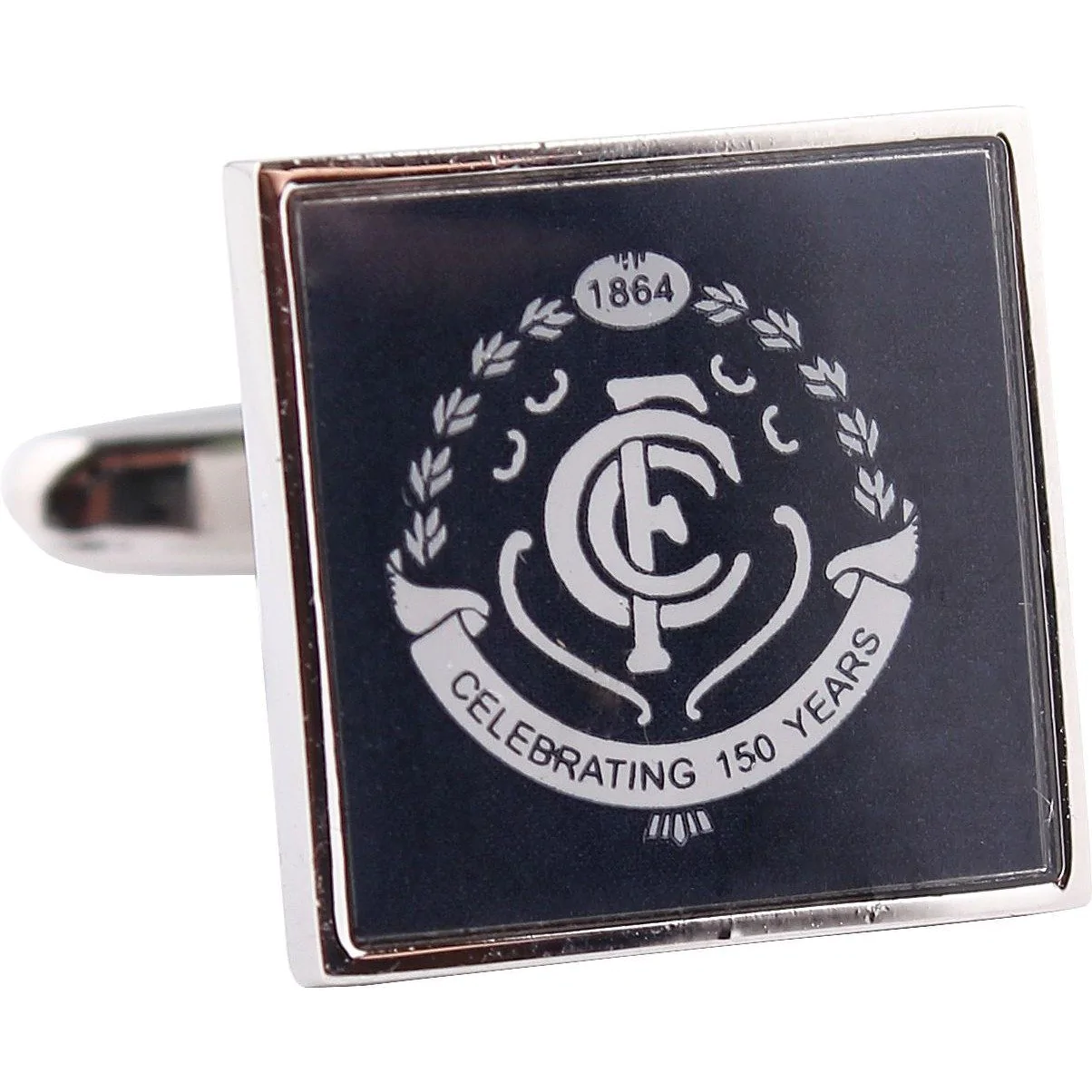 With a record sixteen senior premierships, the Blues are one of the most successful and storied clubs in Australian Football League History. A founding AFL member whose lineage dates back to 1897, the history of the Carlton Football Club speaks for itself. The classic logo of Carlton is embossed in a beautiful silver Rhodium plate finish over a striking enamel background in the unmistakable deep blue of Carlton FC. These officially licensed Australian Football League cufflinks come presented in an appropriately blue gift box and make the perfect gift for the discriminating Carlton supporter in your life!