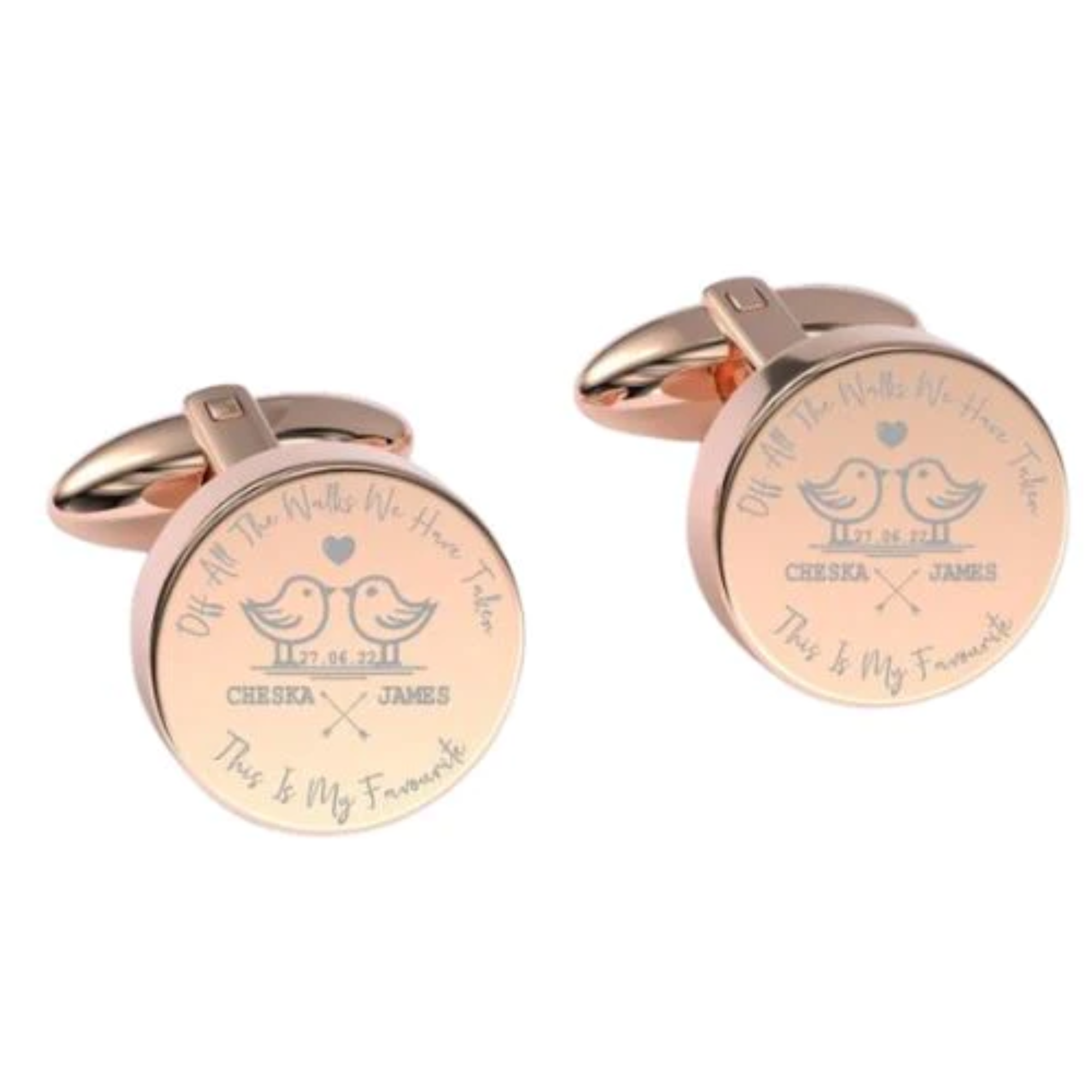 Comes in a stylish gift boxShop personalised cufflinks. A pair of stunning customised cufflinks that can be engraved with the couple's names and wedding dates. Beautifully engraved to perfection and makes an excellent gift. They can be worn on ANY dress shirt with Shirt Cuff Adapter. Gift Box is included for FREE.