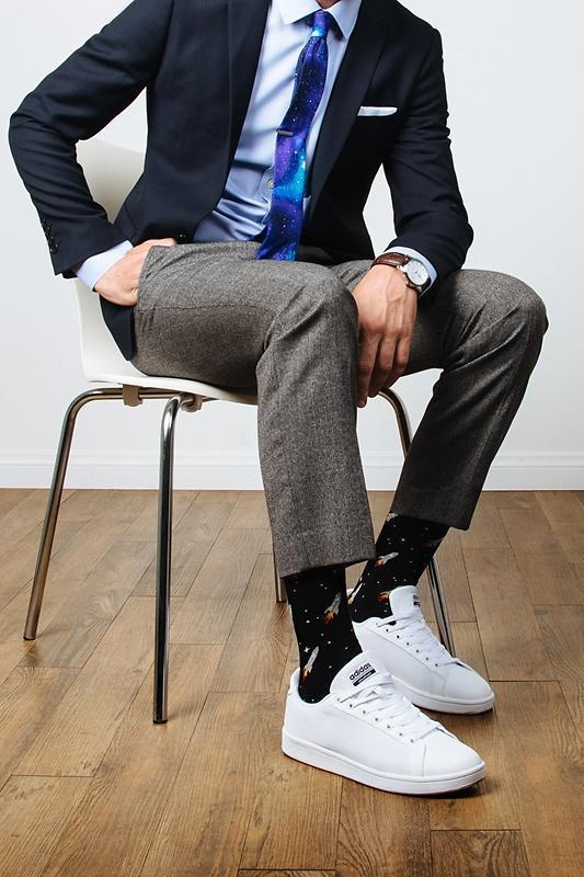 Let your style soar with our Rocket Ship socks. These out-of-this-world socks feature a rocket-filled galaxy, and are made of carded cotton so you can explore the universe with comfort and durability in tow.