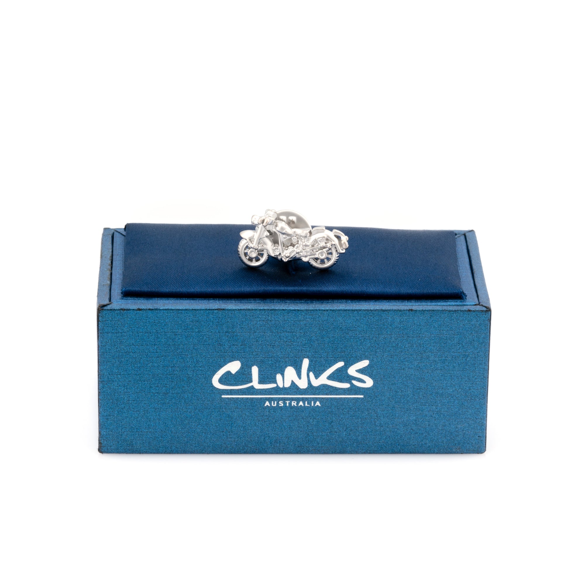 Comes in a stylish gift boxThis classic motorbike replica lapel pin set is one of the newer additions to our catalogue, coming after repeated demands from our customers. So here it is, folks - crafted from top quality rhodium-plated silver with intricate detail. So pull on that leather jacket and hop onto that bike. Presented in a handsome gift box.