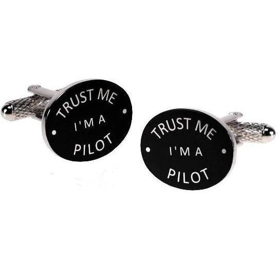 Comes in a stylish gift boxCufflinks with TRUST ME I'M A PILOT on them.