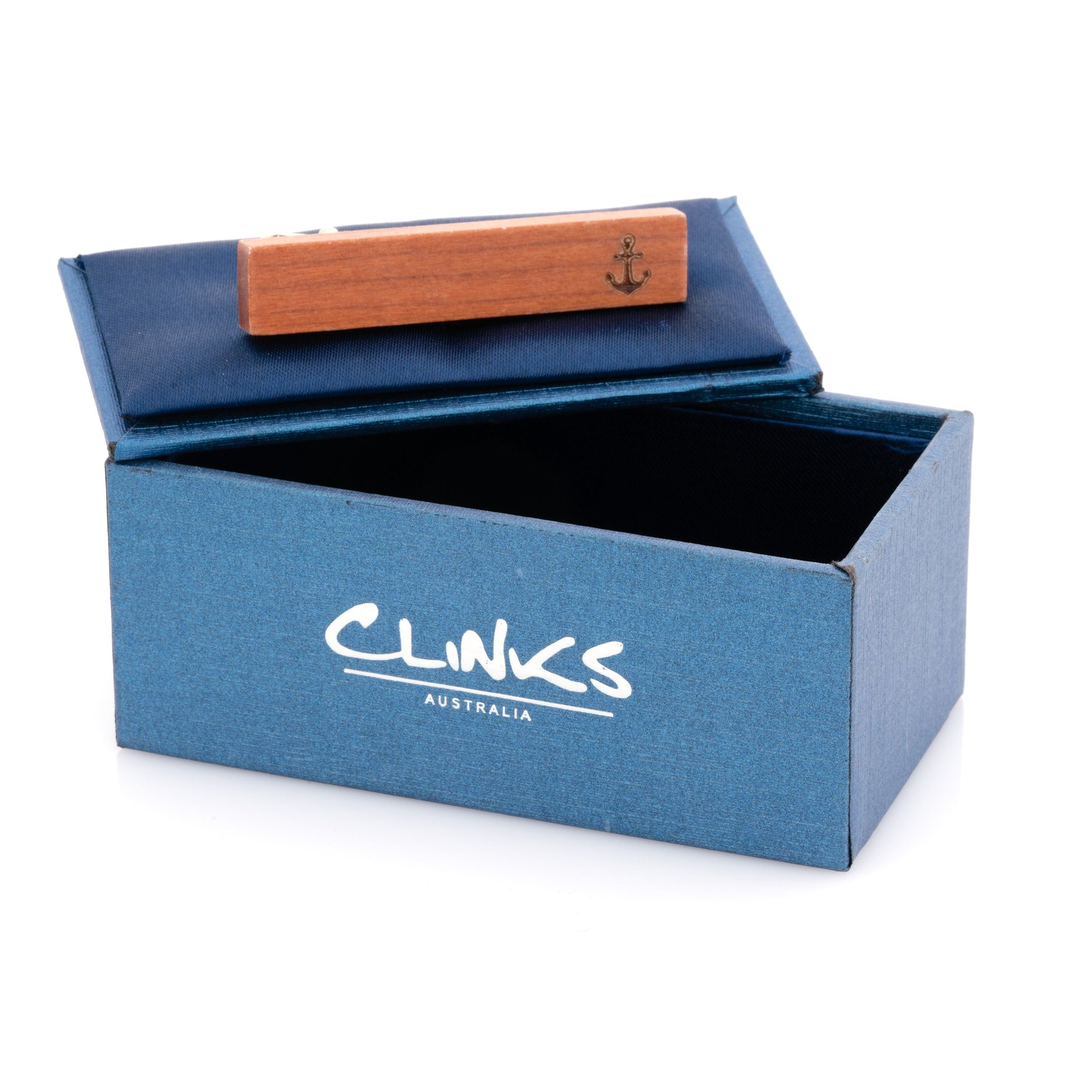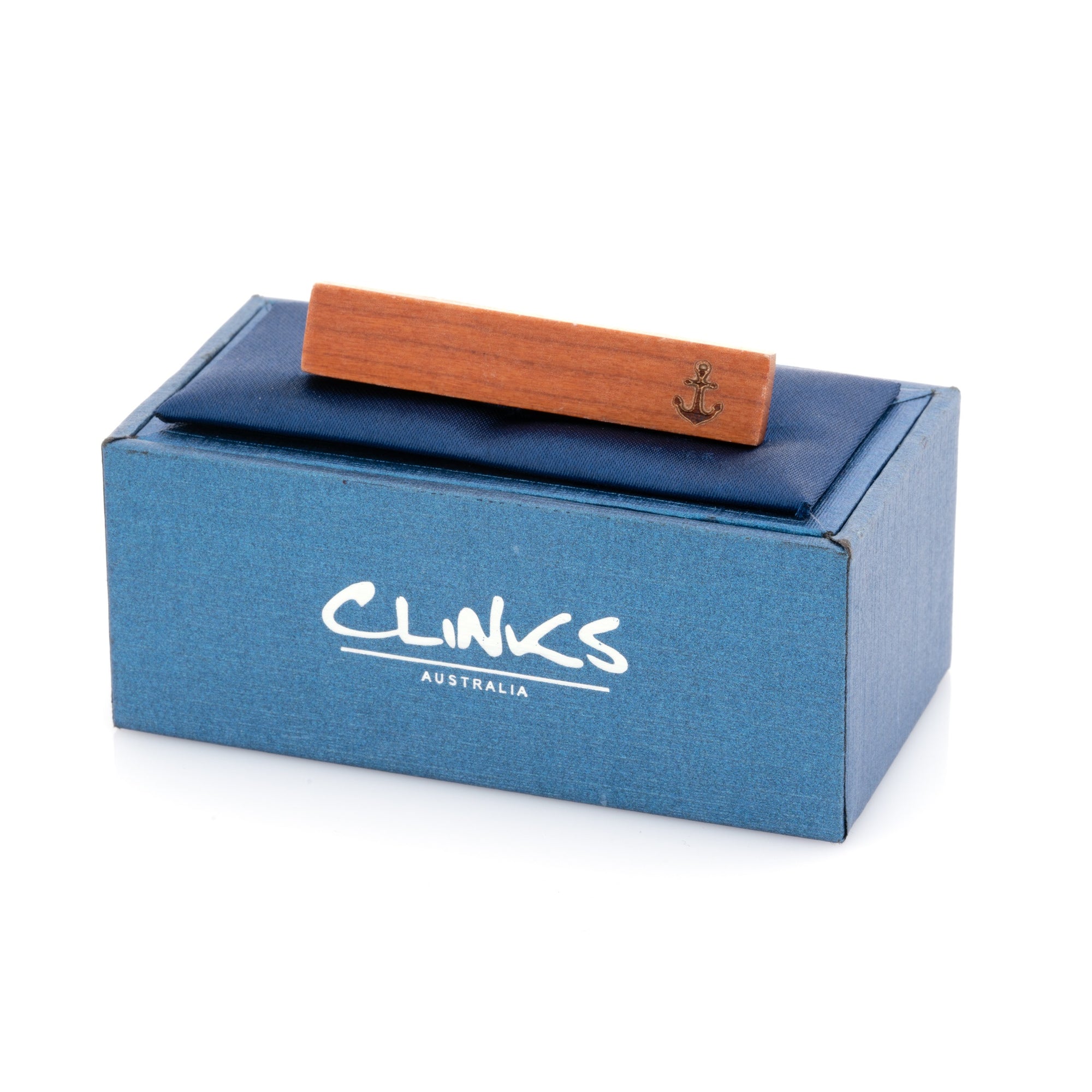 Comes in a stylish gift boxA trendy wooden tie clip featuring a small anchor stamp. Handmade for maritime enthusiasts. Comes presented in a stylish gift box. Size is 51mm x 10mm